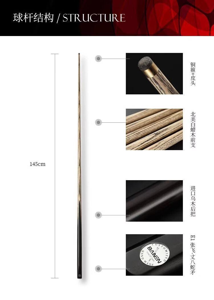 The BANEN Series Q/Q1 Inlay Billiard Cue (with Dragon Pearl/Flower Bloom/Wind Fire Wheel motifs) is ...