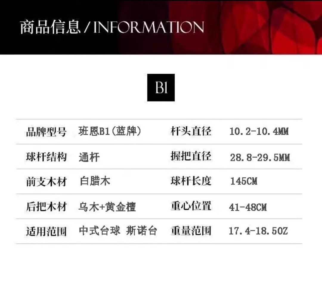 BANEN Series B B3 Blue Label Billiard Cue is a handcrafted small-tip cue focusing on practicality an...