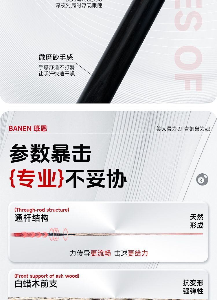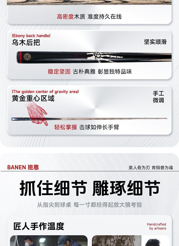 BANEN E Series ET Billiard Cue is a representative handcrafted small-tip cue in the brand's high-end...